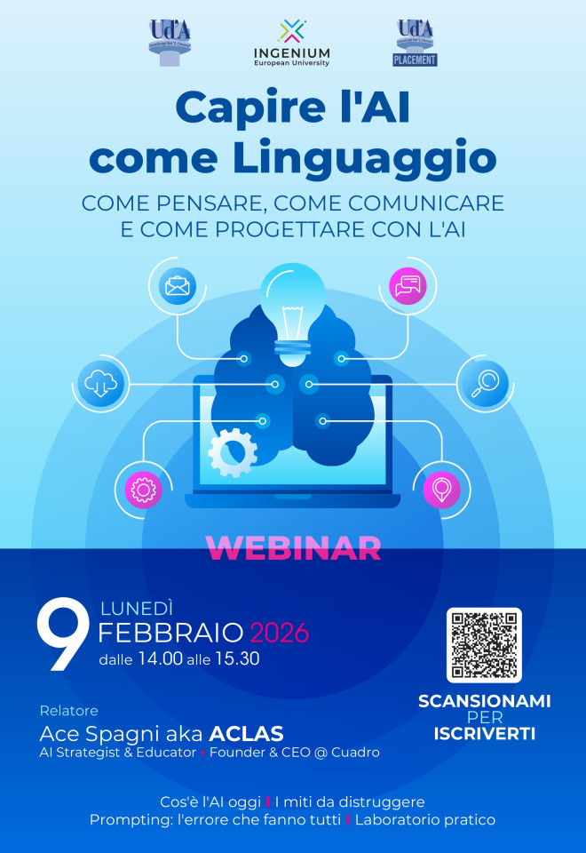 Un workshop pratico per imparare a ragionare con l’AI: come funziona davvero, come parlarci, come integrarla nello studio e nel lavoro.