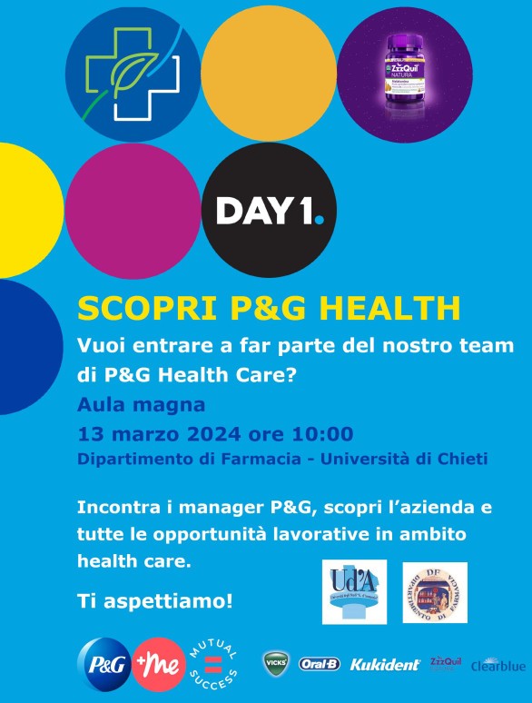 Partecipa all’evento P&G Healt mercoledì 13 marzo 2024 alle ore 10:00 presso l’aula Magna di Farmacia per incontrare i manager P&G, conoscere l’azienda e tutte le opportunità lavorative in ambito Healt Care!