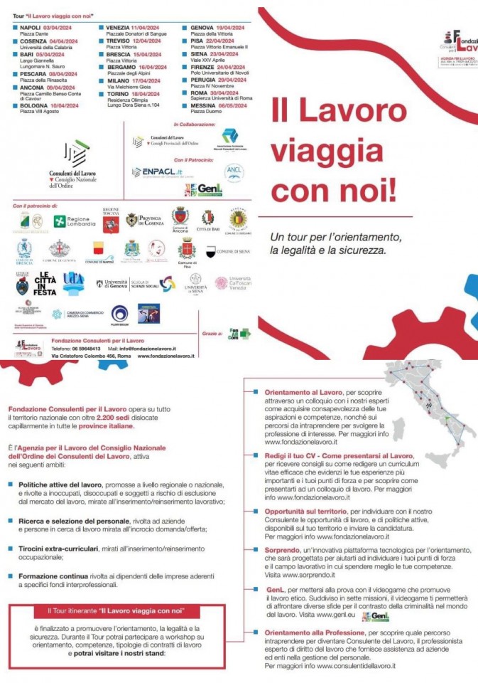 Durante il Tour potrai partecipare a workshop su orientamento, competenze, tipologie di contratti di lavoro e visitare i seguenti stand: