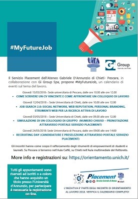 #MyFutureJob è un intervento organizzato dall'Ateneo "Gabriele d'Annunzio, per mezzo del proprio Servizio centrale di Placement e l'azienda GiGroup SpA, riservato a tutti gli iscritti ed a quanti hanno già acquisito un titolo presso l'Università di Chieti - Pescara.